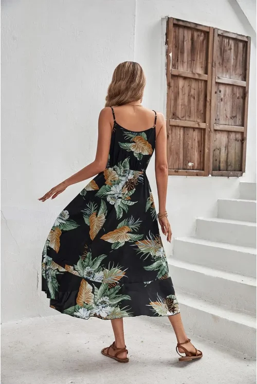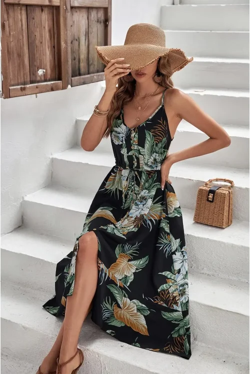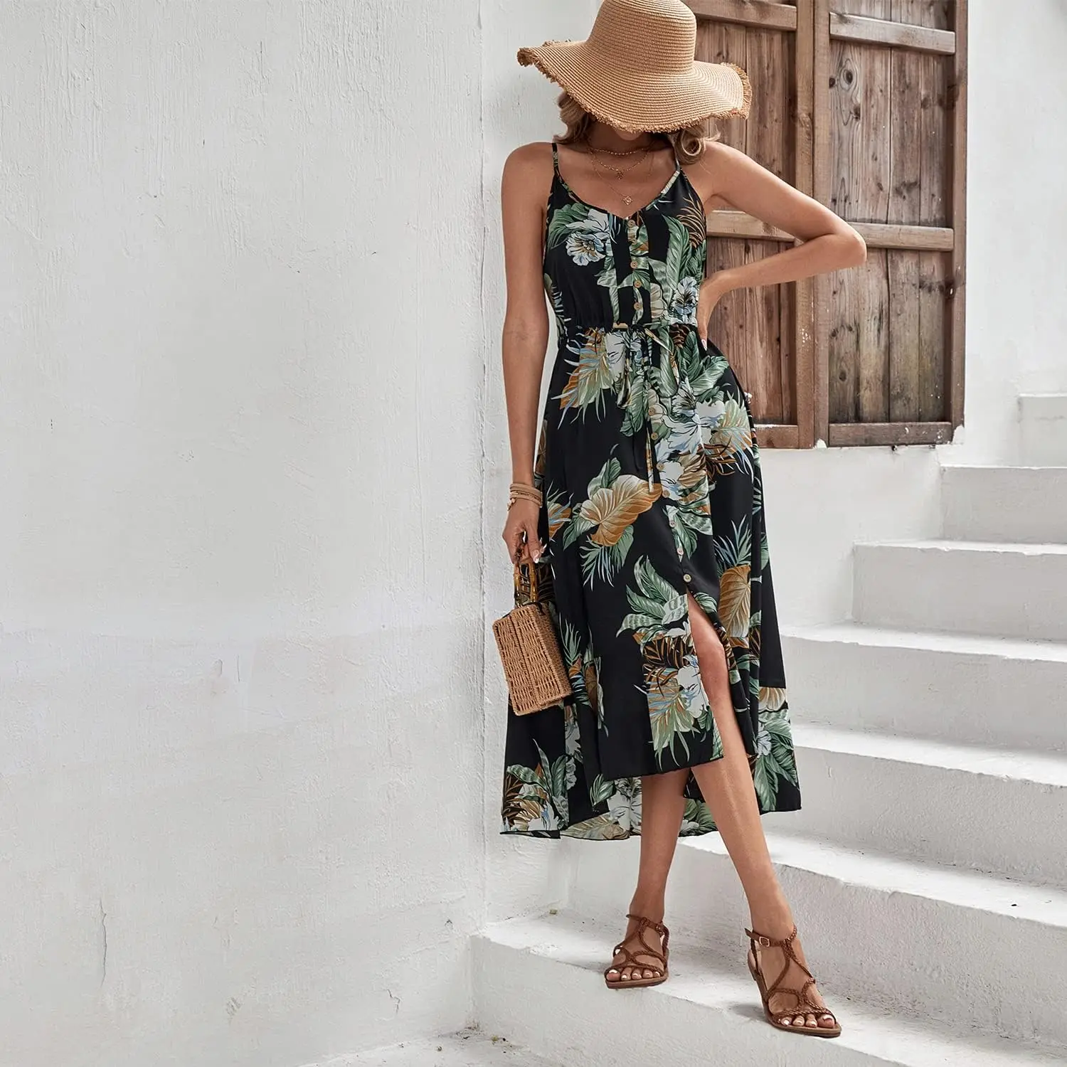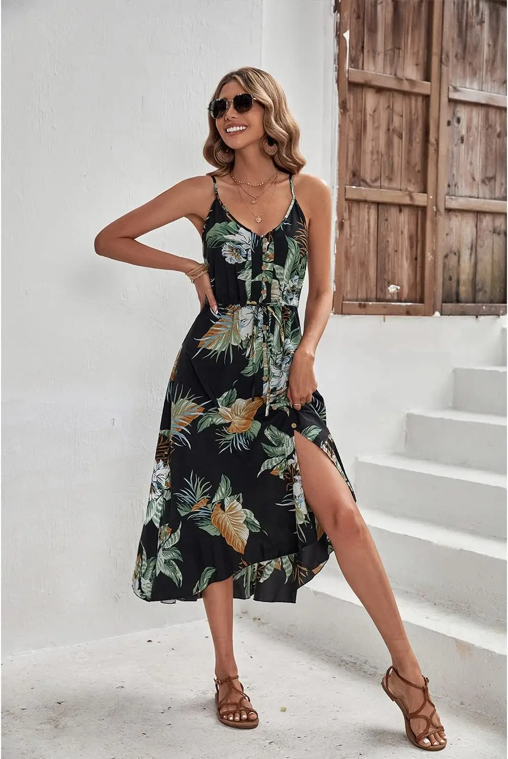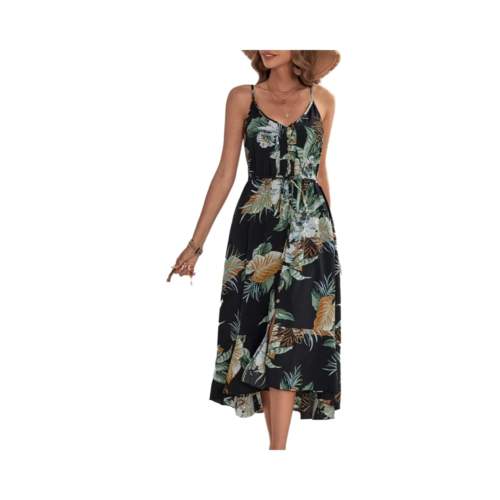 Product Name: Women’s Summer Casual Boho Sundress Floral Chiffon Spaghetti Strap V-Neck Flowy Midi Floor-Length Natural Sexy Digital Polka Dot