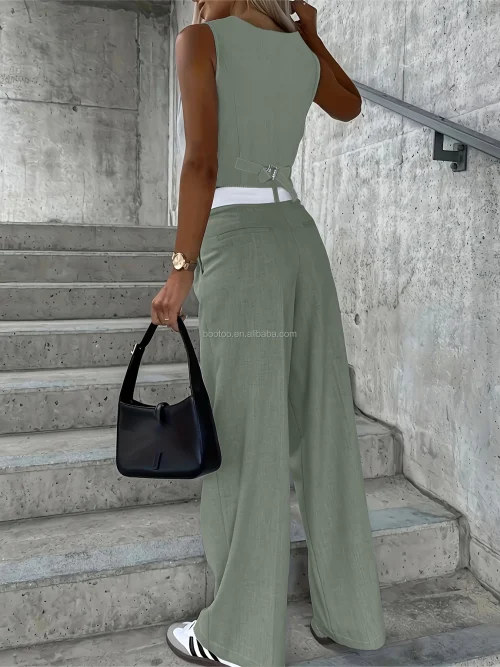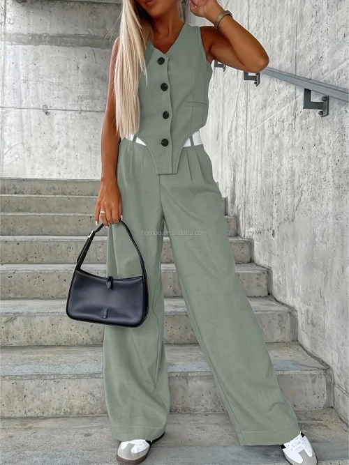 Product Name: Women’s Summer Casual V-Neck Vest Suit Solid Pattern Short Sleeveless Tops with Button Decoration Loose Fit Club Dress