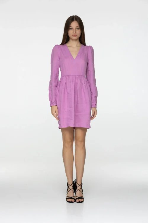 Product Name: Women’s Summer Clothes Short Dress Long Sleeve Casual Style Linen Dress With Pockets Linen V Neck Long Lantern Sleeves