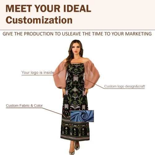 Product Name: Women’s Vintage Floral Embroidered Robe Dress Maxi Length Streetwear Style with Sequins Plain Dyed Natural Waistline
