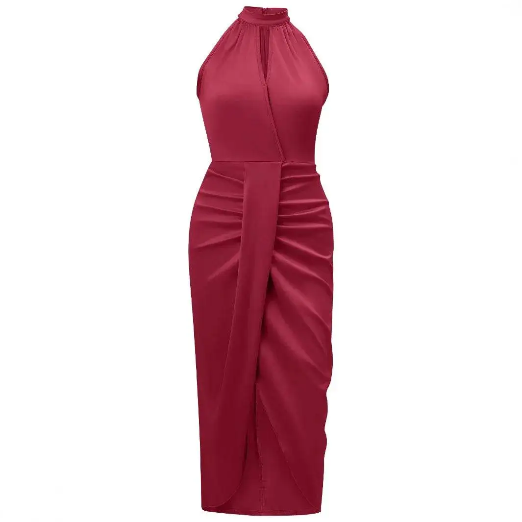 Product Name: Women’s Vintage Summer Dress Sleeveless Hanging Neck Slit Evening Dress Simple Fashionable Design for Parties