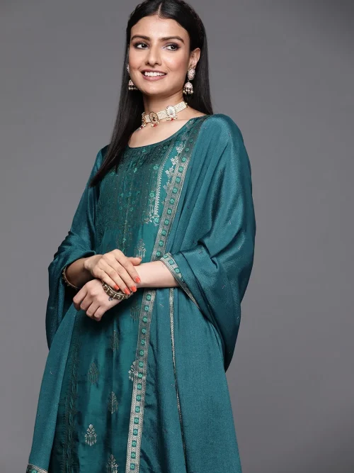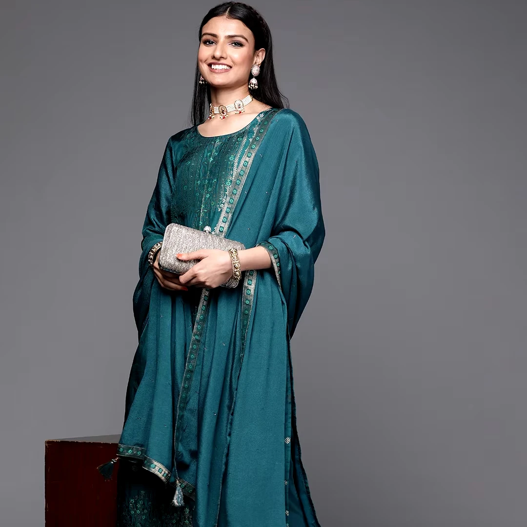 Product Name: Women’s Viscose Jacquard Kurta Set with Pant Dupatta Long Pakistani Dress for Casual Party Occasions Rayon Fabric for Adults