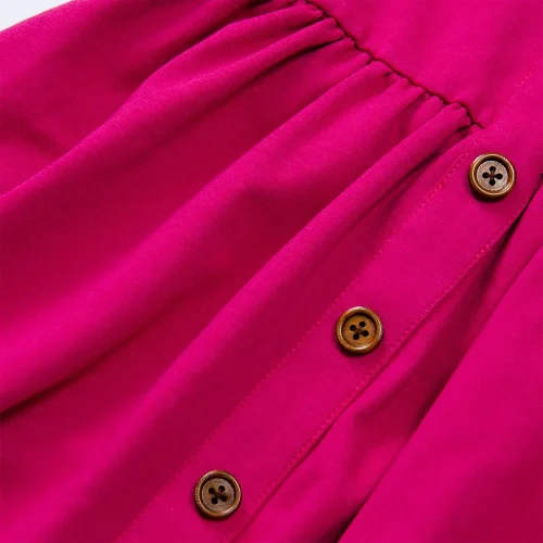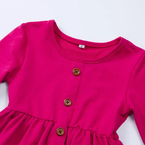Product Name: Wooden Button Down Midi Dress Casual Wear Solid Color Long Sleeves Knit Cotton Toddler Girls Twirl Dresses
