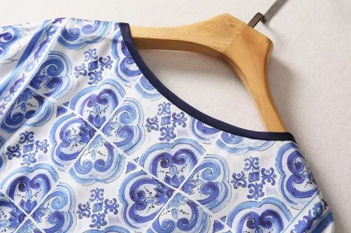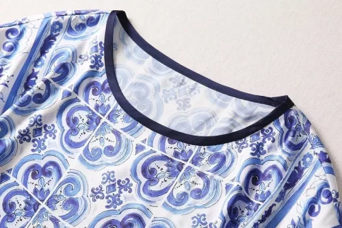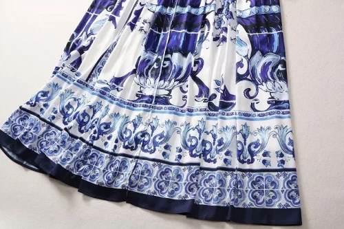 Product Name: XXL Long Dress 2023 Autumn Style Women O-Neck Vintage Porcelain Prints Flare Sleeve Casual Bohemian Beach Long Maxi Dress Blue