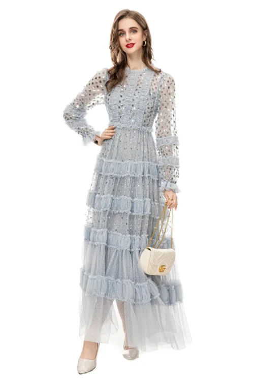 XXXXL Long Party Women Dress 2024 Autumn Winter Wedding Women Allover Sequined Embroidery Lace Patchwork Long Grey Red Dress