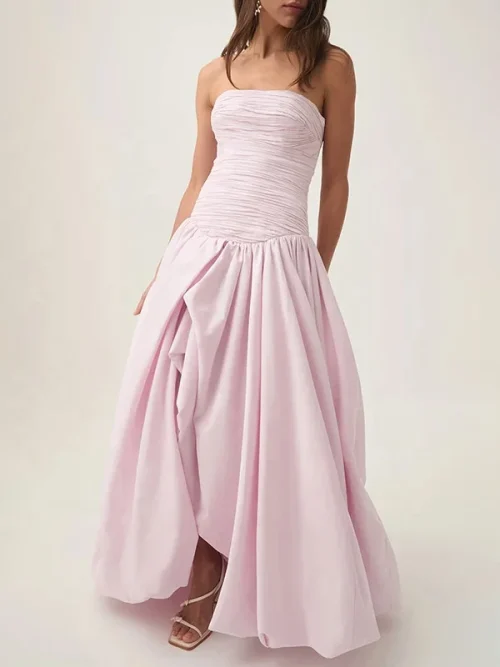 Product Name: YC 2025 Spring Summer Casual Dress Women Elegant Strapless Beautiful Long High Waist Slim Pleated Split Party Irregular
