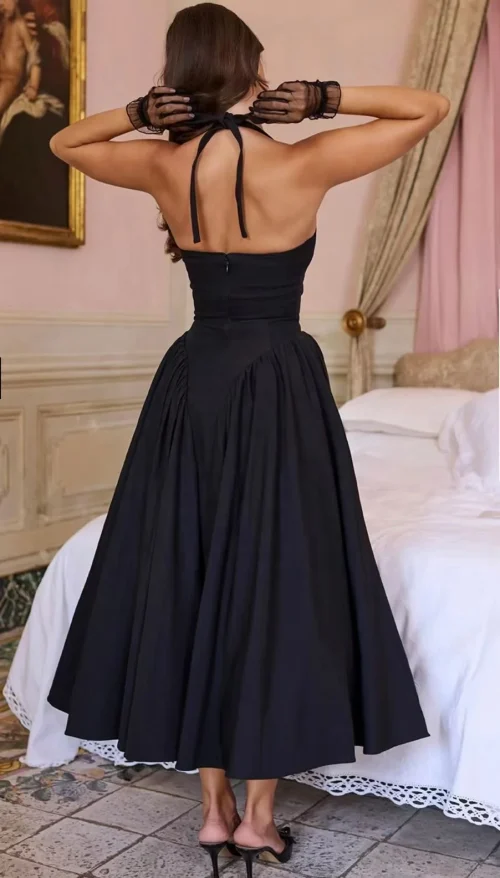 Product Name: YC 2025 Spring Summer Women’s Casual Dress Sexy Fashion Sleeveless Pullover Fairy Halter Black White Party Female