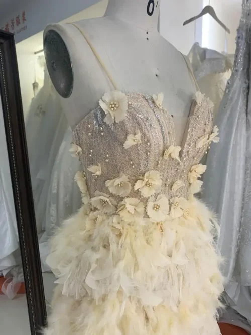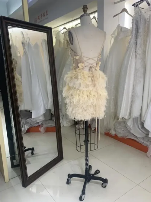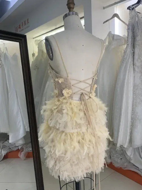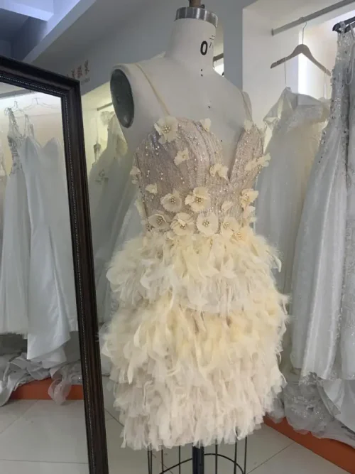 Yellow Feather 3D Flower Spaghetti Strap Homecoming Short Dress for Girls