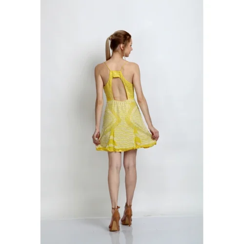 Product Name: Yellow Halter Neck Bodycon Dress Women Trendy Sleeveless Summer Dress Elegant Fit Flare Casual Beachwear Stylish Cocktail Dress