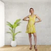 Product Name: Yellow Halter Neck Bodycon Dress Women Trendy Sleeveless Summer Dress Elegant Fit Flare Casual Beachwear Stylish Cocktail Dress