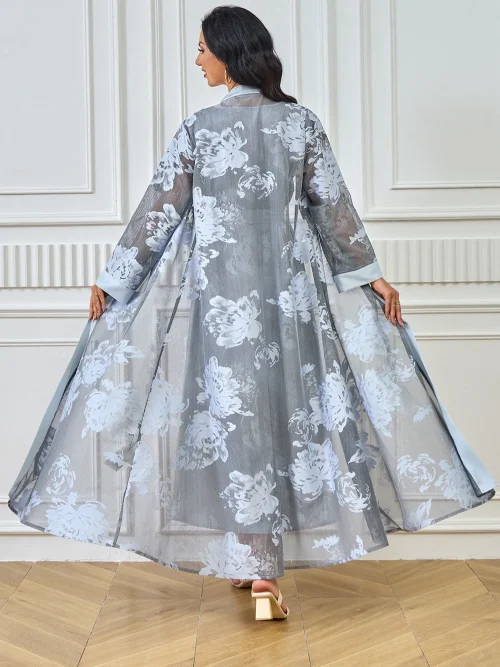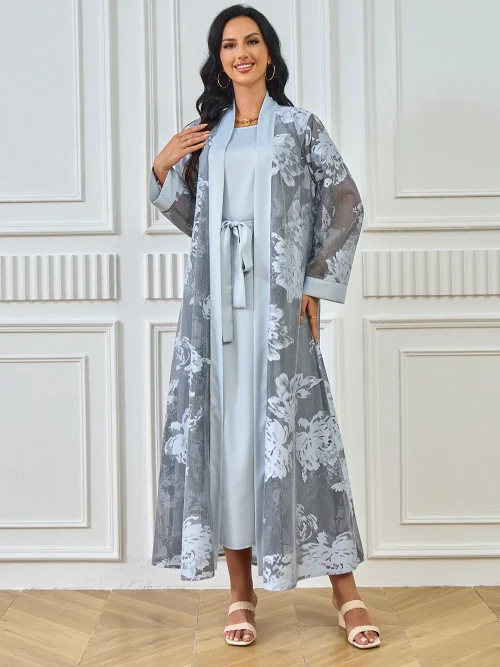 Product Name: Yilingna Middle East Cross-border Muslim Saudi Abaya Gown Floral Casual Cardigan Two-piece Women’s Dress