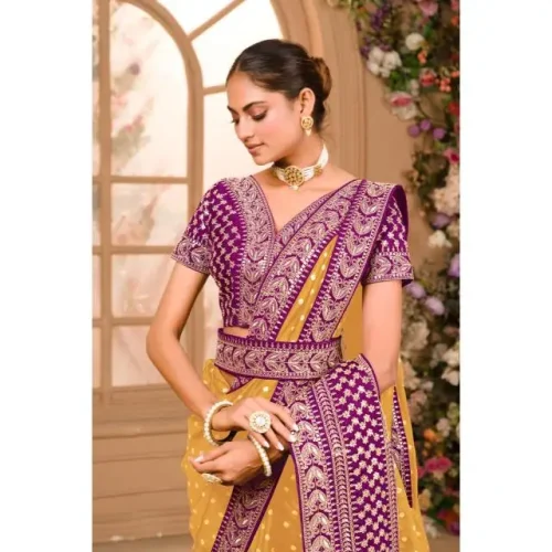 Product Name: Zariwork Designer Saree Zari Sequence Work Designer Saree With Blouse Pre Stitched Pleated Easy Drape Saree
