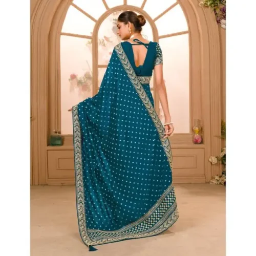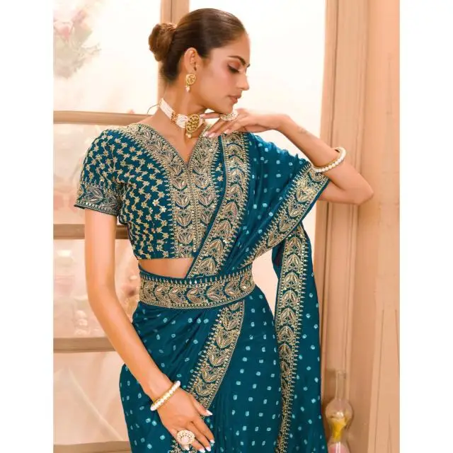 Product Name: Zariwork Designer Saree Zari Sequence Work Designer Saree With Blouse Pre Stitched Pleated Easy Drape Saree