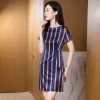 Product Name: ZYHT 11211 2025 Spring New Design Lace Mandarin Collar Hip Wrap Dress Flounce Ruffle Waist Casual Lady Dresses