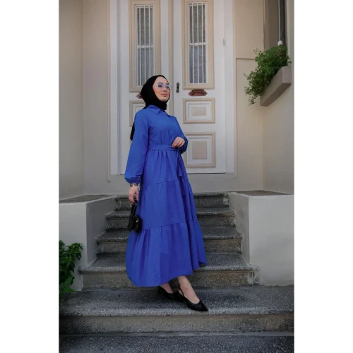 Women’s Waist Tied Layered Hijab Dress Saks Blue