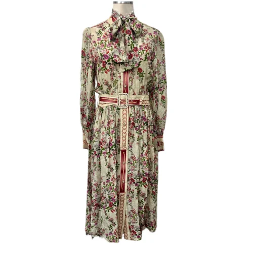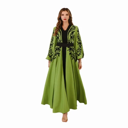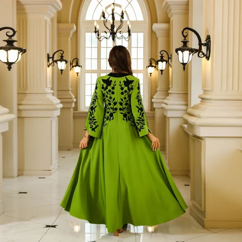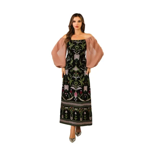 Women’s Vintage Floral Embroidered Robe Dress Maxi Length Streetwear Style with Sequins Plain Dyed Natural Waistline