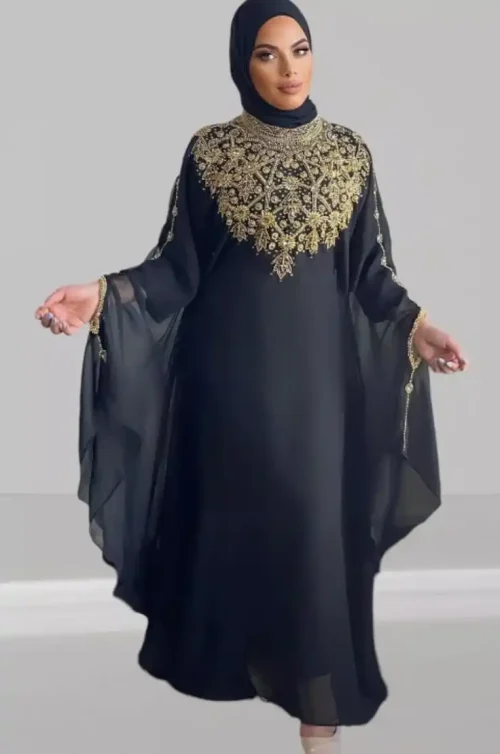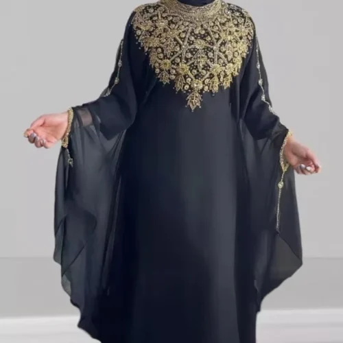 XXL Size Casual Ethnic Modest Hand Embroidered Rayon Abayas for Women Hooded Kimono Button Design Traditional Muslim Clothing