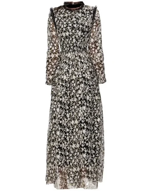 XXL Long Evening Dress 2024 Autumn Winter Party Women Allover Exquisite Embroidery Lace Patchwork Long Sleeve Black Maxi Dress