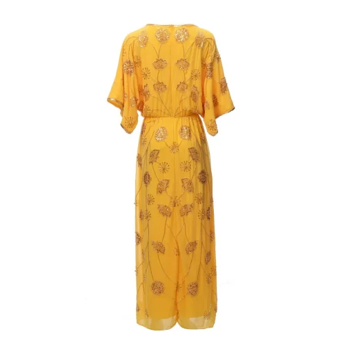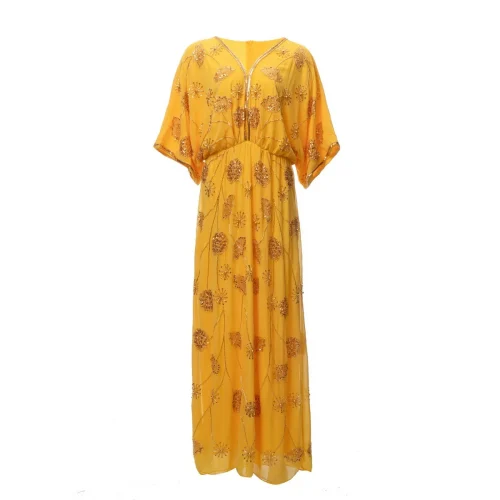 XXL Long Dress 2024 Spring Summer Party Events Women V-Neck Batwing Sleeve Sequined Beading Long Green Yellow Chiffon Dresses