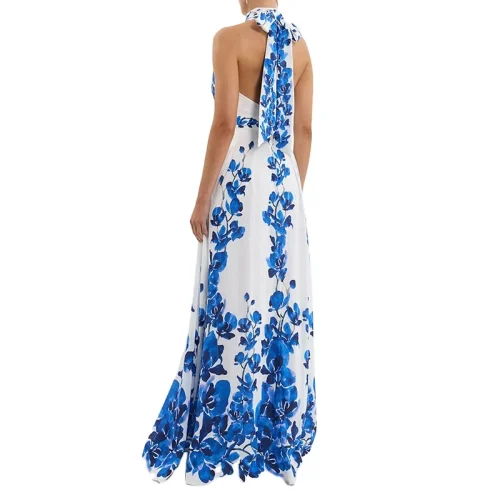 XXL Women’s Clothing Summer Dresses 2025 Women Floral Print Elegant Casual Holiday Party Halter Neck Floor Length Long Dress