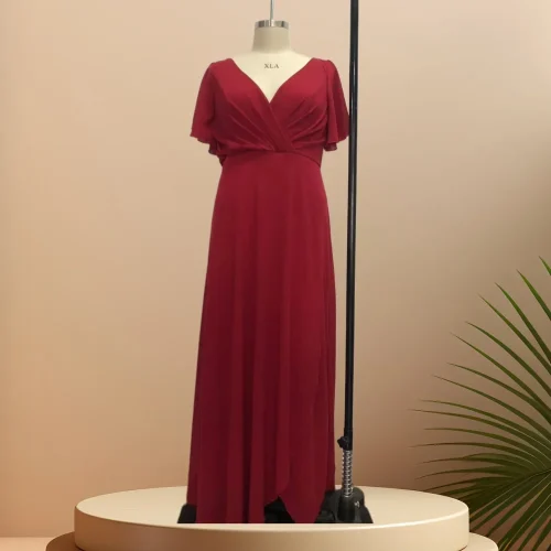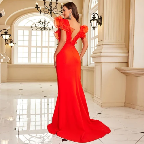 Latest izable Red Floor-Length Evening Party Dresses for Women Fitted Chiffon Lace Ruffles Decoration Plus Size Option