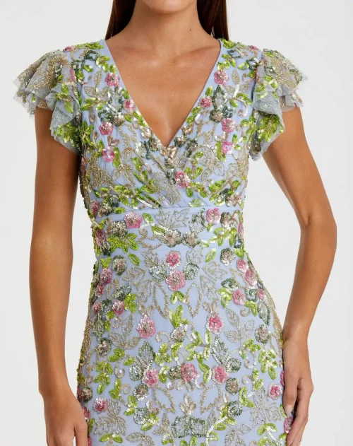 Luxury Evening Dresses Sexy Hollow Gorgeous Feather Sleeves Blue Sequin Dress Party Evening Performance Dress