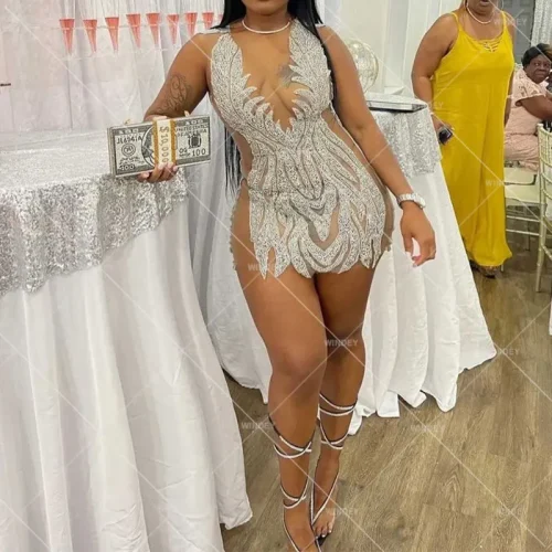New Arrivals Diamond Colorful Rhinestone Glamour Girl Dinner Gown Evening Dress Ladies Miss Universal Night Dresses for Woman