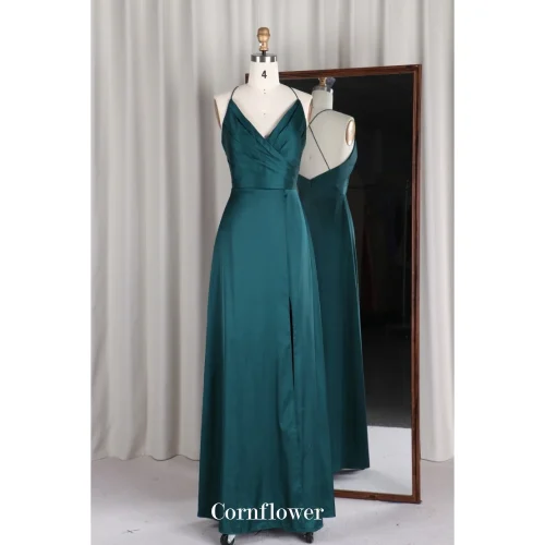 Most Popular Unique U-back Crossover Zipper Evening Gown Halter Dresses Elegant Ball Gown for Bridesmaid Green Straight Skirt