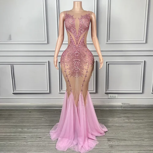 Womens Clothing Online Stores Trendy Evening Dress 2024 With Diamond Elegant Sleeveless Fancy Party Wear for Party