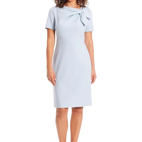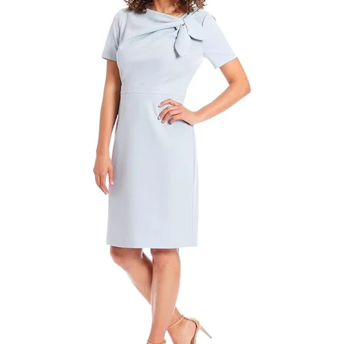 Women’s Polished Sheath Dress with Bow Workwear Dress Career Office Desk Trending V-neck Women’s Curved Waist Seam Crepe