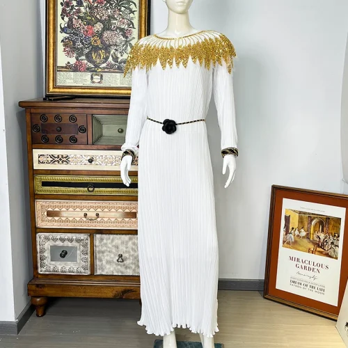 Women’s Muslim Dress Solid Color Heavy Industry Beads Long Dress